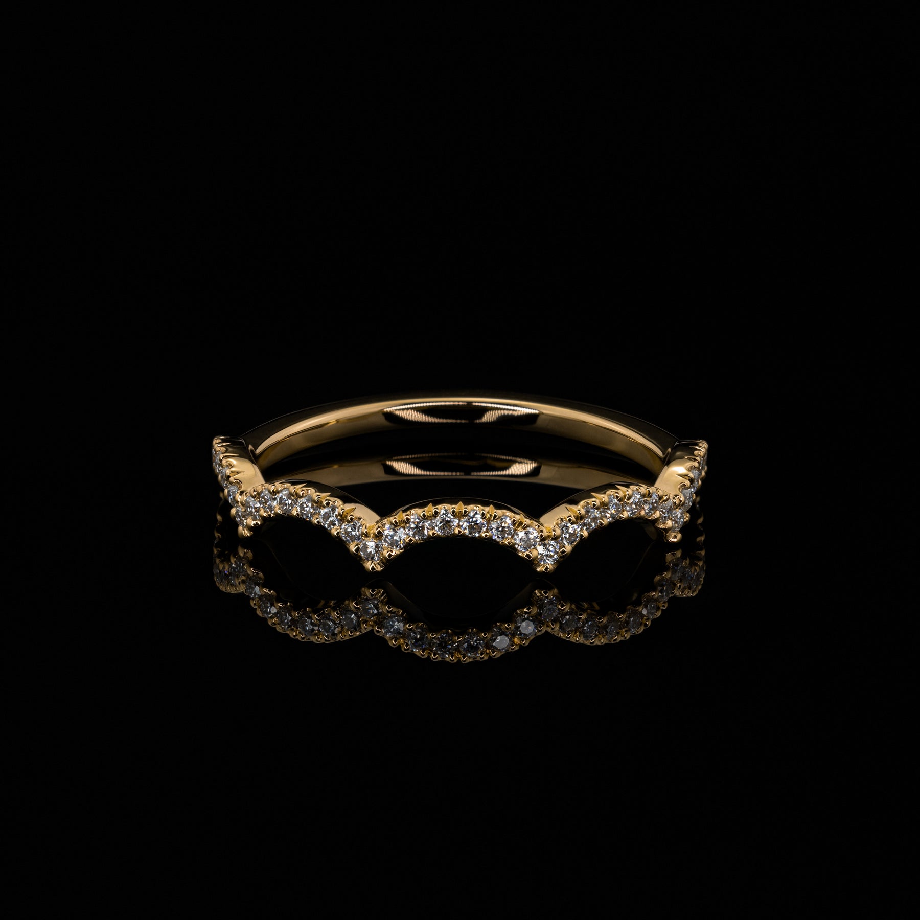 Das wellige Design von Selina wirkt durch die Spitzen modern und elegant. Die fünf gleichmäßig geformten Bögen peppen jeden geradlinigen Ring wunderbar auf, wenn Selina als Vorsteckring getragen wird. Die dadurch entstehenden Lücken lockern Ringkombinationen gekonnt auf. Selina passt sowohl als Verlobungsring, Vorsteckring und Schmuckring optimal an jede Hand!