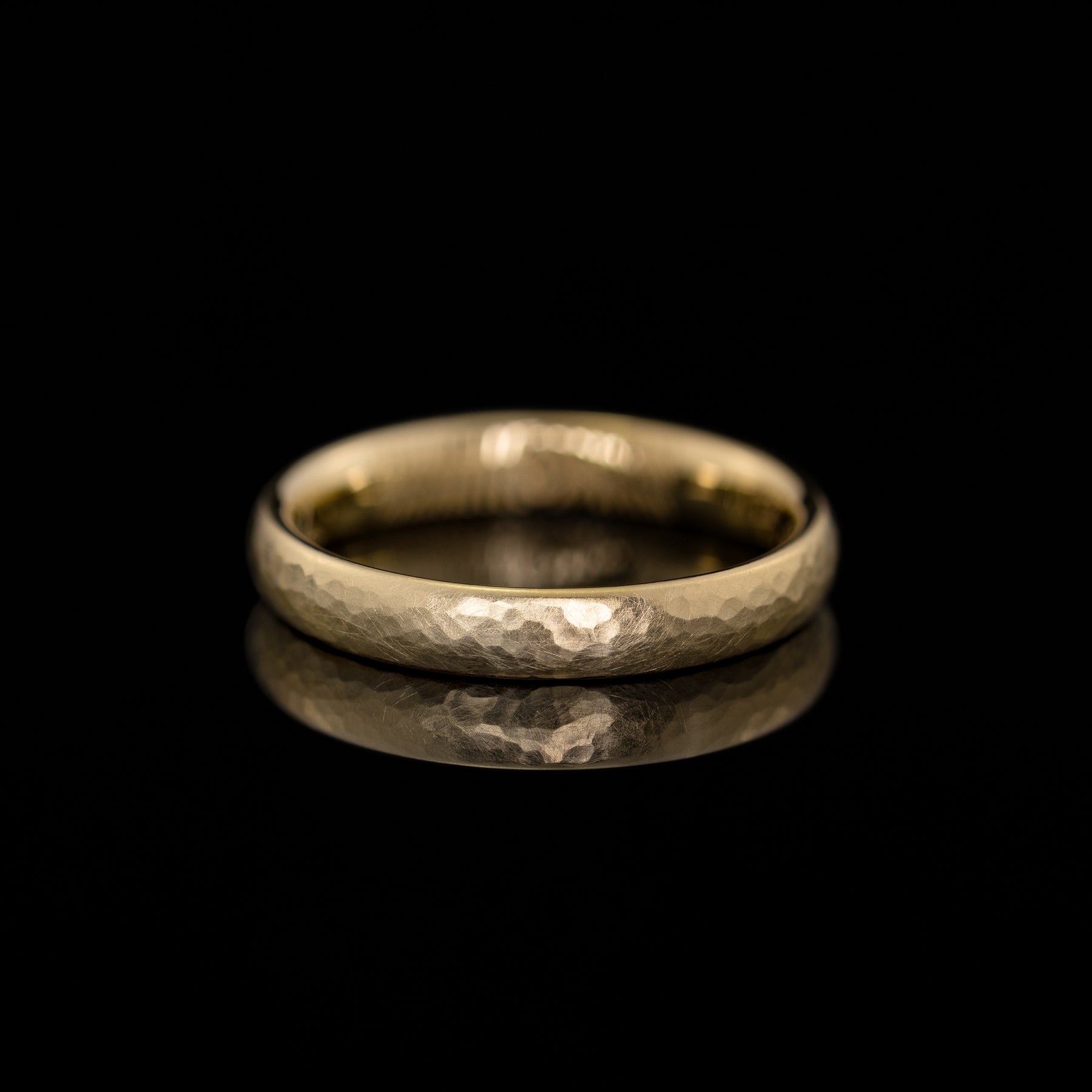 Damenring mit kleinem runden Hammerschlag, besonderer Ehering von der Goldschmiede Goldzeit in Nuernberg Gelbgold Detailaufnahme